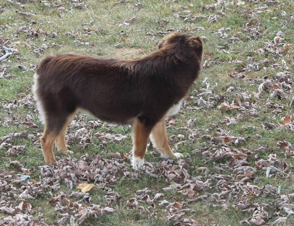 Daisy is a offspring of Aspen. She is one of our upcoming Dams! Daisy is still in her spunky puppy stage, she follows behind her momma in wanting to be right by our side when we are doing chores! Anxious to see her finish growing.