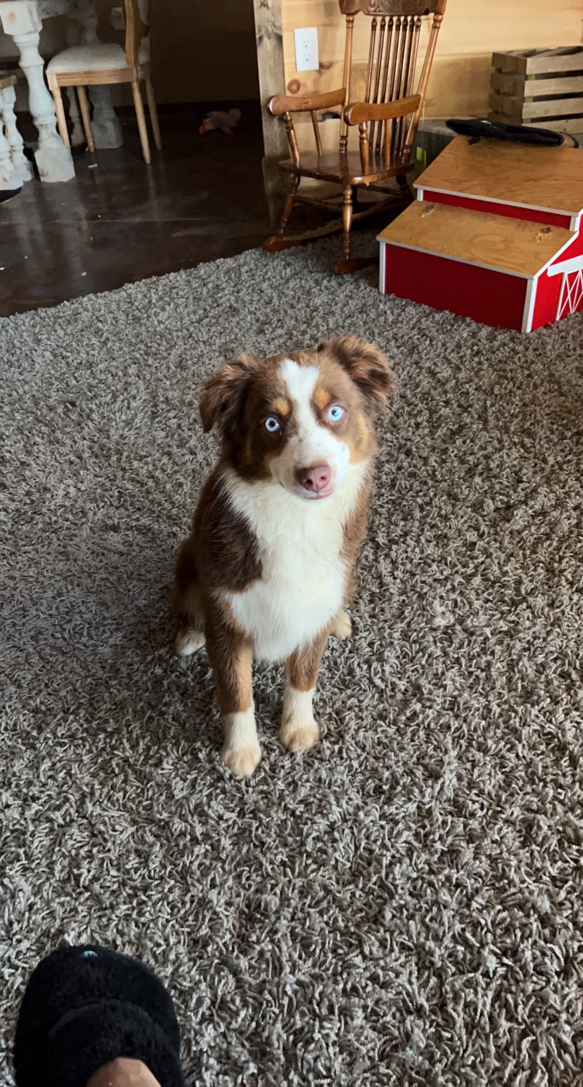 Aspen joined our crew as a 4 year old coming from Lonesome Pine Aussies! She is the most loyal relaxed momma you can come by. She is always by my side not having a distraction in the world. We are more than pleased with choosing her to join us, when we did! She holds the true definition of aussie, loyal and loving.